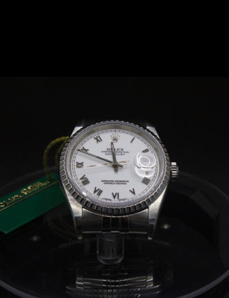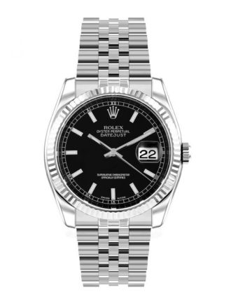 Rolex Oyster Perpetual Datejust Stainless Steel 126234 Pre-owned Rolex Oyster Perpetual Datejust 2 Stainless Steel 126234. 36mm stainless steel case, 18ct white gold "fluted" bezel, black "baton" dial featuring a date indicator at 3 o'clock, automatic movement, on a stainless steel Jubilee bracelet.