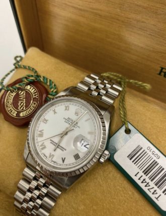 Beautiful gent's Rolex Datejust - 36mm - Stainless steel model - 1996 - T Reg - 16220. Fully serviced in pristine condition 👌🏻, box, cushion and tags, no papers. Pre owned, in excellent condition for its age as you can see from the listed pictures Fully serviced and sold with a Watches Of Warwickshire 12 months warranty.